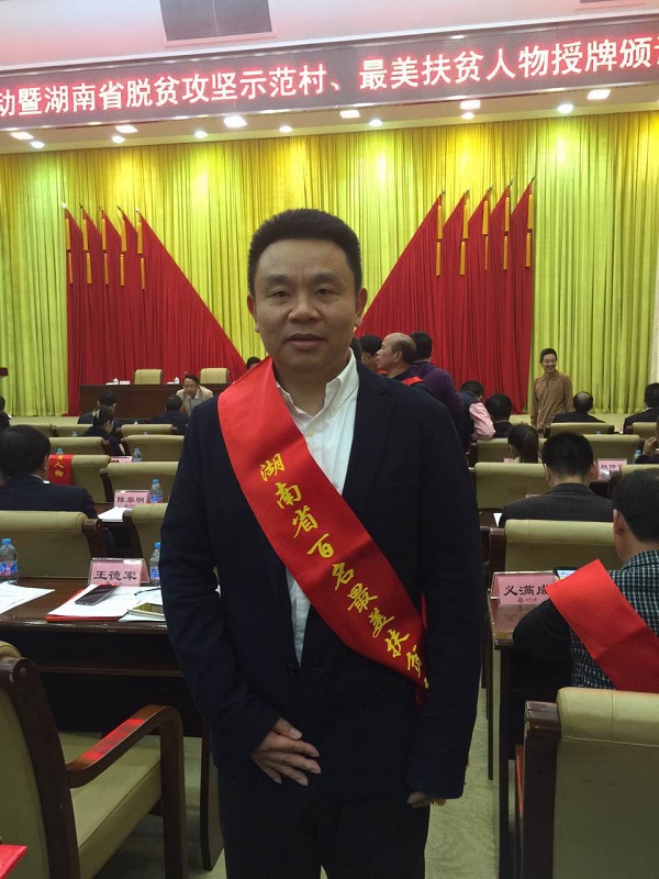 2016年10月14日,湖南长沙“扶贫日宣传运动暨湖南省脱贫攻坚示范村、最美扶贫人物授牌颁证仪式”在湖南九所宾馆聚会会议中心隆重举行。加入聚会会议的主要领导有省人民政府副省长戴道晋、省政府副秘书长曹英华、省扶贫办、湖南日报社等单元主要卖力人。经过推荐申报、筛选初审、民众投票和组织专家评审,我司董事长赵忠荣获 “湖南百名最美扶贫人物”称谓。
