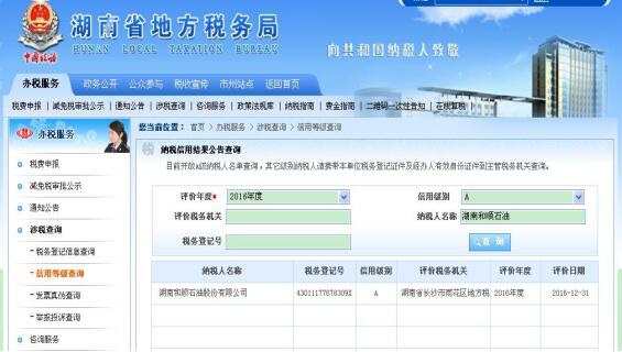 为推进社会诚信体系建设,湖南省国税局、地税局凭据国家税务总局《纳税信用治理措施(试行)》(总局通告2014第40号),开展了2016年度纳税信用联合评价事情,我司再次获得纳税信用“金字代言——A级纳税人”的称谓,我司已连续三年获此荣誉,展现了诚信纳税的良好企业形象。